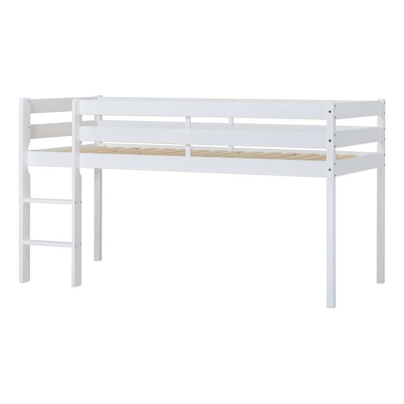 Hoppekids ECO Comfort halvhøj seng er perfekt til små værelser, da den giver ekstra plads under sengen. Man kan bl.a. bruge pladsen til ekstra opbevaring eller som legeområde. Højden på sengen er 72 cm og er god til børn, som gerne vil have en høj seng ud