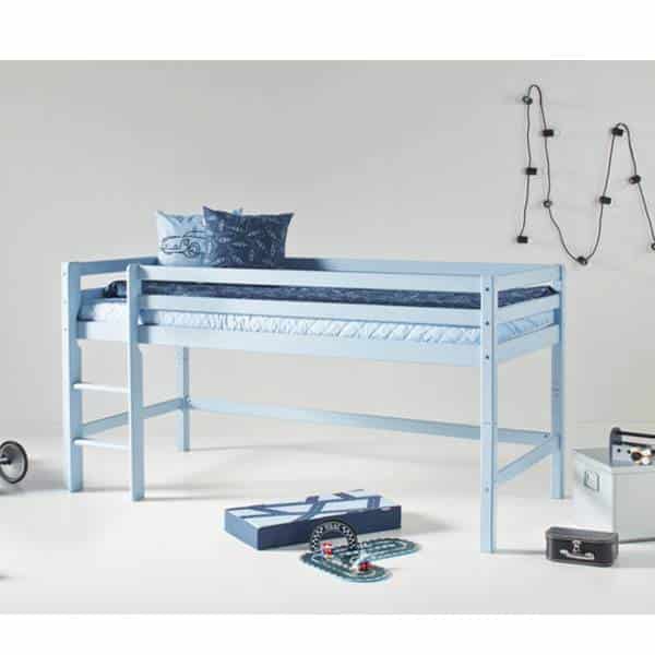 Halvhøj seng ECO Dream 90 x 200 cm ECO Dream halvhøj seng er en smart seng til det lidt større barn. Sengen giver mere gulvplads til at lege på og med forhæng omkring er den en hyggelig hule. Sengen er svanemærket – din garanti for at sengen opfylder elle