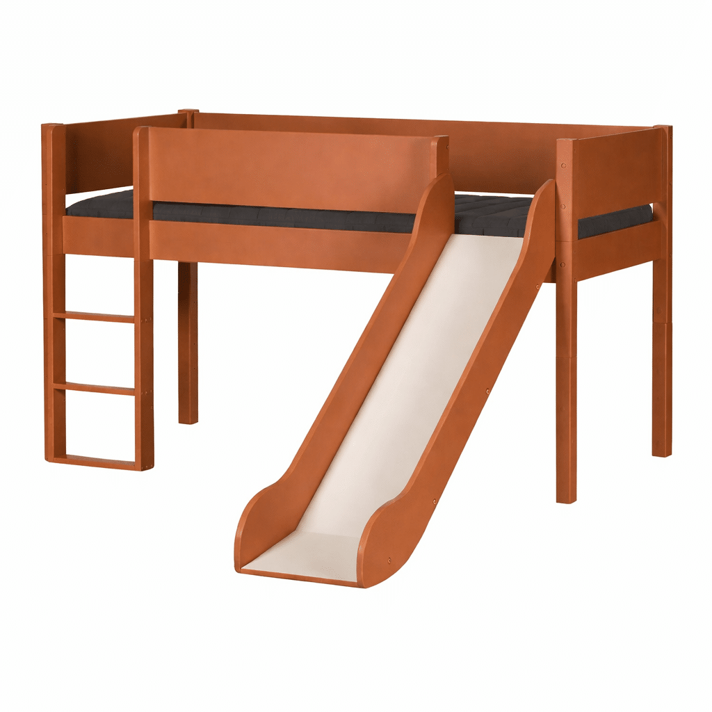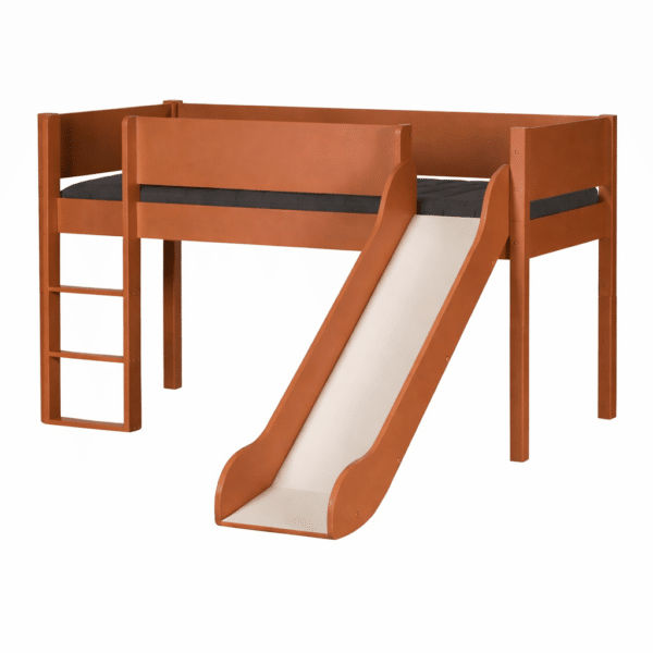 Børneseng med rutsjebane – leg og tryghed i ét magisk universLoke er en halvhøj seng med rutsjebane, skabt til børn, der elsker fart og fantasi – og til forældre, der ønsker en tryg, funktionel og smuk løsning til børneværelset. Her kombineres leg og